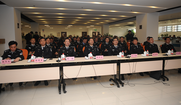 在江苏省公安厅,考察团认真听取江苏省厅副厅长程建东的公安信息化建设应用全面介绍,现场观摩了江苏“警务大数据”工程建设应用、网安信息化建设发展历程。