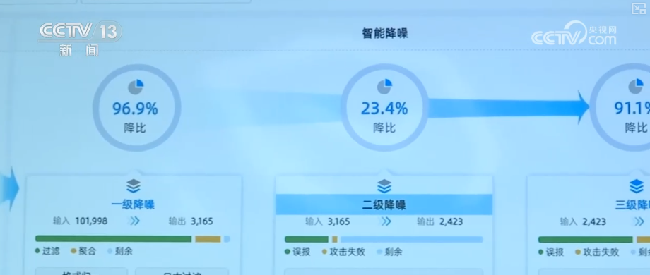 技术人员介绍,以往应对网络攻击主要以人工为主,耗时耗力。在引入AI之后,通过搭建不同的模型,可以将网络攻击的告警层层进行筛选,提高应对效率。
