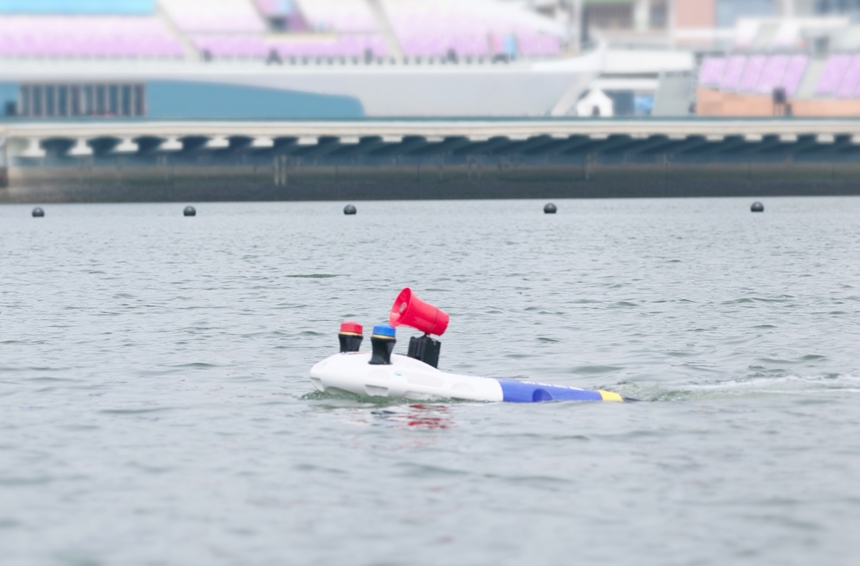 与此同时,在承担闭幕式任务的宝安区欢乐剧场附近海域,蓝白相间的U形水上海防巡逻机器人也已投入使用。