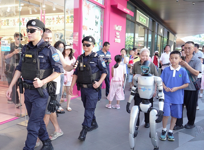机器人不仅是安防工具,也成为公众接触科技的窗口。场馆外,常有家长带孩子与机器人互动合影;校园安防机器人凭借卡通形象吸引学生参与安全问答;商圈中的反诈宣传机器人亦成为网红打卡点。“机器人既能互动,又能及时响应求助,让人感觉更亲切、更安心。”市民李先生说。