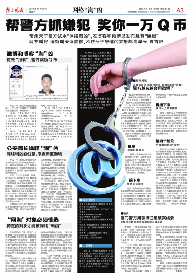 天网1号 警方在微博1万Q币悬赏“淘凶”
