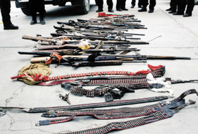 兰波:2000年大概是4月份开始,公安机关对阿坝州下设有13个县进行全面清理,当时叫缉枪治爆。第一年行动缴获1万余支枪支,在政策宣传之下,大部分人是主动上交。2000年截止到去年年末,我们共搞了七次行动,收枪支大概是3万余支,军用子弹3000余发。在缉枪治爆和收枪活动当中,很多百姓主动上交,寺院没交这些武器,也没报,要不是有人举报说寺院里有枪支,有犯罪嫌疑人没投案自首,我们可能也不会去清理,这次是偶然发现,但没想到佛门净地竟有这么多枪支弹药。
