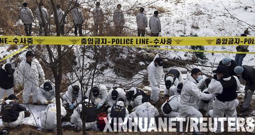 1月30日,在韩国首尔以南的华城,警方挖掘遇难者尸体。当日,韩国警方称日前逮捕的犯罪嫌疑人已经承认杀死至少7名妇女。警方怀疑还有其他人死于非命,死者包括犯罪嫌疑人的前妻。新华社/路透