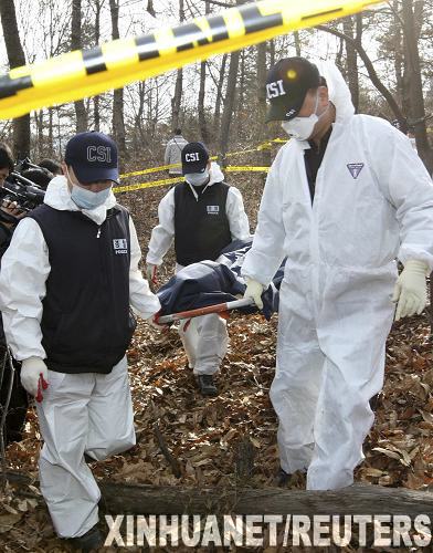 1月30日,在韩国首尔以南的华城,警方将一具遇难者尸体抬走。当日,韩国警方称日前逮捕的犯罪嫌疑人已经承认杀死至少7名妇女。警方怀疑还有其他人死于非命,死者包括犯罪嫌疑人的前妻。新华社/路透