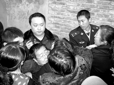 5时30分,记者闻讯赶到现场时看到,红山路西段德华巷口已因此出现车辆严重拥堵,围观群众过百人。该醉酒男子仍然大喊大叫,被交警抬上车又强行跳下,并奋力挣脱交警和其家属的控制,扑向旁边缓慢行驶的大客车车轮。就在围观群众一片指责声中,该男子又挣脱众人的束缚,撒腿向附近的德华北巷里跑去,并边跑边回头看。3名交警见状立即追赶,追出近100米再次将其控制,准备带回约束醒酒,结果其又干脆躺在地上不起来。期间,该醉酒男子的三四名家属百般阻挠。交警没辙,只得求助公安民警和120急救中心。后120医护人员赶来,采了该男子的血,该男子被家人领回,整个过程闹腾了一个多小时。