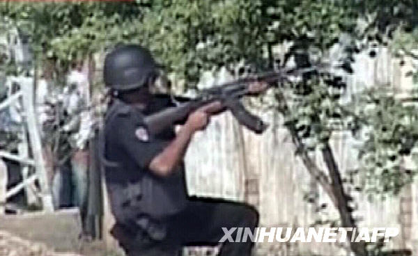 这张3月30日拍摄的电视截图照片显示了一名巴基斯坦特种部队士兵在拉合尔执行任务。巴基斯坦警方当日说,一伙身份不明的武装分子当天袭击了巴东部的一所警察训练学校。新华社/法新 [组图]