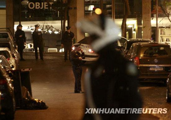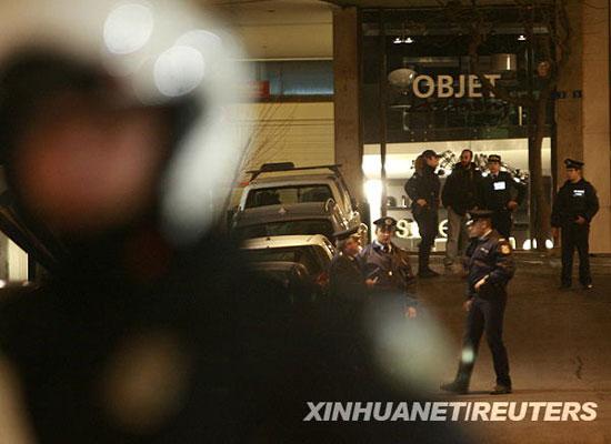 2月16日,在希腊首都雅典市中心,警察在爆炸现场附近调查。新华社/法新