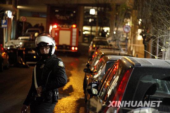 2月16日,在希腊首都雅典市中心,警察封锁了爆炸现场附近的街道。新华社发