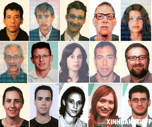 这张2月24日阿联酋迪拜警方公布的拼版照片显示的是新增的15名暗杀马巴胡赫的嫌疑人。迪拜警方24日发表声明说,涉嫌暗杀巴勒斯坦伊斯兰抵抗运动(哈马斯)领导人马哈茂德·马巴胡赫的嫌疑人数已升至28人,其中包括先前落网的被关押在迪拜的2名巴勒斯坦人。新华社/法新 [资料图片]