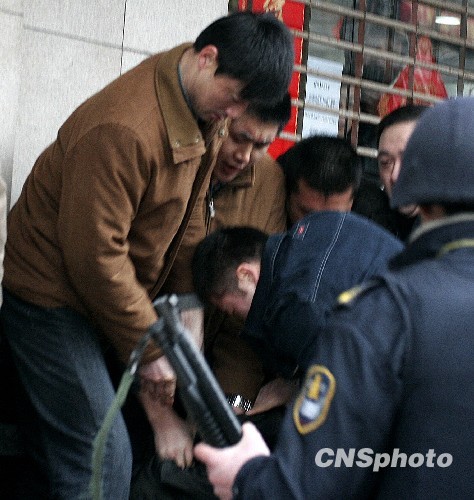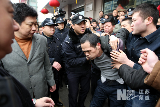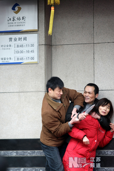 据介绍,3月3日上午8时18分,无锡“110”接到报警:南长永乐路上发生劫持人质案。无锡市公安局和南长公安分局的领导相继率刑警、特警快速赶到现场,交巡警果断采取交通管制措施。无锡副市长、市公安局局长赵志新接到报告后,赶到市公安局指挥中心通过视频指挥处置工作。歹徒是一名三十六、七岁的中年男子,被劫持人质系一中年女子。歹徒精神狂躁,左手夹住人质脖子,右手持尖刀抵住人质颈部,嘴里大声嚷嚷“有人要杀他”。警方制定了几套方案,一边组织谈判专家劝说,稳定歹徒情绪,一边调集特警分2组从左右分别靠近,伺机制服。歹徒情绪始终处于亢奋状态,就在其握刀的右手突然举起一刹那,一名特警跨步上前紧紧锁住其手腕。几乎同时,歹徒被扑倒在地制服,人质安全获救。此时距接报警40分钟。现场数千名围观群众鼓掌喝彩。