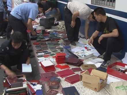 民警在清点假证件