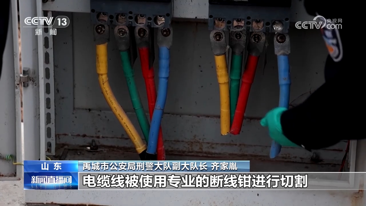 禹城市公安局刑警大队副大队长 齐家胤:电缆线被使用专业的断线钳进行切割,涉案价值特别巨大,初步核算应该在100万元以上。