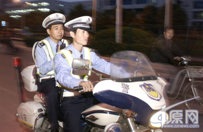 昨晚,特巡五大队民警在北环辅道上巡逻。晚报记者周甬图