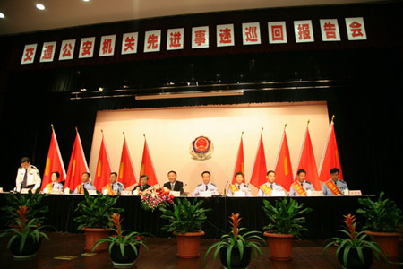 10月15日,交通公安机关先进事迹巡回报告团在上海举行首场报告会,在报告会上,来自全国的五名交通公安先进集体代表和个人分别作了精彩演讲。此次巡回报告会是交通部公安系统弘扬英模精神的一次盛会,再一次掀起了交通公安机关学习先进、争当先进的热潮。广大民警纷纷表示一定会把学习先进典型所激发出的热情转化成力量,全力为交通港航经济建设保驾护航,为公安事业发展做出新的更大的贡献!