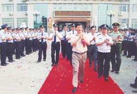 广西壮族自治区副主席吴恒(前排中)出席南宁监狱现代化文明监狱挂牌仪式