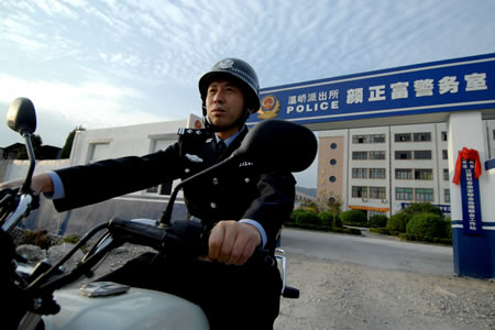 浙江省温岭市温峤派出所颜正富警务室警察颜正富正在出勤。