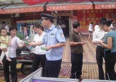现场,记者还看到民警发放各种宣传材料,材料内容包括交通安全宣传、消防防火宣传。民警现场教育群众如何遵守交通规则,珍爱生命,平安出行,做文明人、安全行车人;如何进行防抢、防盗、防骗;如何进行防火自救和灭火逃生等消防知识讲解。