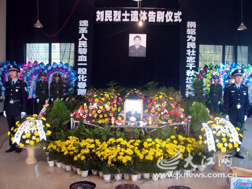 人们沉痛哀悼英雄民警刘民。