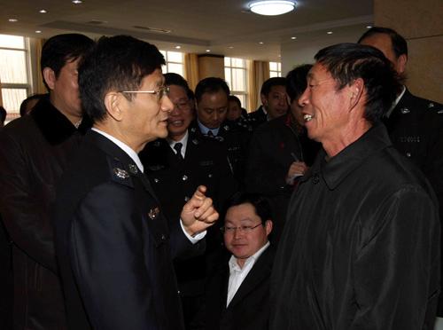 | 11月22日至23日,公安部党委书记、部长孟建柱在河北调研公安工作。图为11月22日上午,孟建柱在廊坊市公安局交警支队车管所与群众亲切交谈。赵飞 摄 |