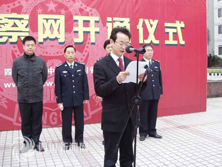(本网记者) 2007年12月20日上午9:30分,省委宣传部、省人民政府新闻办公室、省公安厅、四川新闻网在四川省公安厅举行了隆重的开通仪式。这标志着由四川省公安厅、四川省新闻中心共同主办,四川省公安厅政治部、四川新闻网站具体承办的《四川警察网》正式开通。