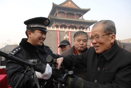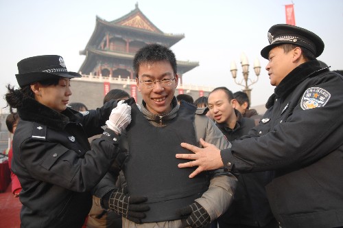 公安宣传周 警察亮家底 来源:新华社 作者:未知 发布时间:2007-12-22 17:20:08 浏览次数: 次 【字体:小 大】 12月21日,一名警察向市民介绍新型警用狙击步枪。当日,天津南开警方“公安宣传周”警务装备展示活动在鼓楼商业街举行,20余种新型警用装备和多功能警用车辆亮相,让市民大饱眼福。 新华社发(苏振强 摄) 12月21日,几名学生与警犬“亲密接触”。新华社发(苏振强 摄) 12月21日,一名学生在警察的帮助下试穿新型警用防弹背心。新华社发(苏振强 摄) 智能标签: 公安宣传周 相关内容 【打印正文】