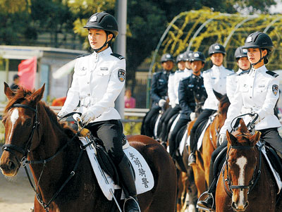 深圳首支骑警巡逻队亮相 英姿飒爽 来源:南方都市报 作者:未知 发布时间:2008-01-02 10:32:20 浏览次数: 次 【字体:小 大】 骑巡队亮相。(来源:晶报) 骑巡队亮相。(来源:新华网广东频道) 骑巡队亮相。(来源:南方都市报) 昨天(1日)上午,在深圳市光明公安分局的挂牌仪式中,首次亮相的光明骑巡队成为了大家眼中的焦点。20名戴着头盔穿着马靴英姿勃发的巡逻队员坐在高大的马上,显得威风异常。这是深圳市警方首支采用骑马进行巡逻的专业队伍。 智能标签: 骑巡队 相关内容 【打印正文】