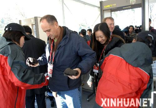 资料照片:2007年11月16日,媒体记者在北京科技大学体育馆体验安保过程。 新华社记者 唐召明 摄