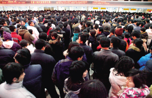等候购买春运车票的旅客