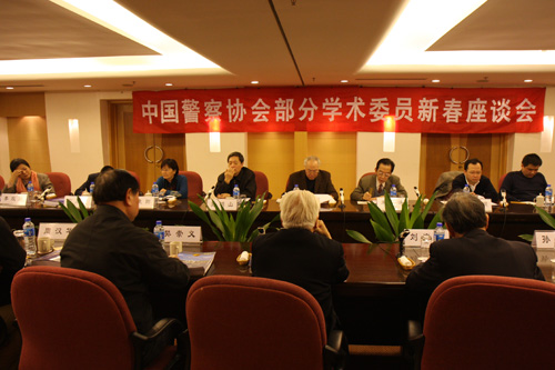 1月24日下午,中国警察协会部分学术委员新春座谈会在北京召开。孙明山副主席主持座谈会,朱恩涛副主席向各位学术委员通报了全国政法工作会议和全国公安厅局长会议精神,罗锋副主席在座谈会结束时作了会议总结。