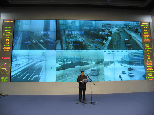 1月28日下午4时,公安部在公安部指挥中心值班大厅举行新闻发布会通报全国雨雪灾害天气条件下重点地区实时交通路况。