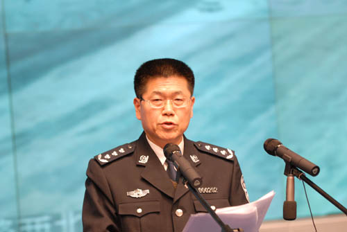 1月28日下午4时,公安部在公安部指挥中心值班大厅举行新闻发布会通报全国雨雪灾害天气条件下重点地区实时交通路况。图为公安部办公厅副主任、新闻发言人武和平进行现场发布。