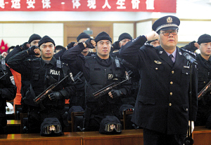 200余名荷枪实弹的民警宣誓,宣告奥运安保进入实战阶段。记者 王俭 摄