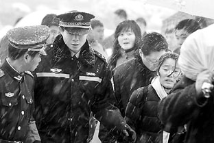 大部分队员在这里连续排堵了20多个小时,却连早饭、中饭都顾不上吃。连日的大雨和昼夜奋战,很多队员都着凉感冒,很多同志在疏导排堵中,有的扭伤了腰,有的被踩肿了脚背,有的被撞青胳膊,有的被行李擦破了皮,参战特警感冒生病的队员达到80%,被挤伤的队员占20%。但是,为了千万家庭的团聚,没有一个人提出下火线。为百姓舍亲情风雨凝噎