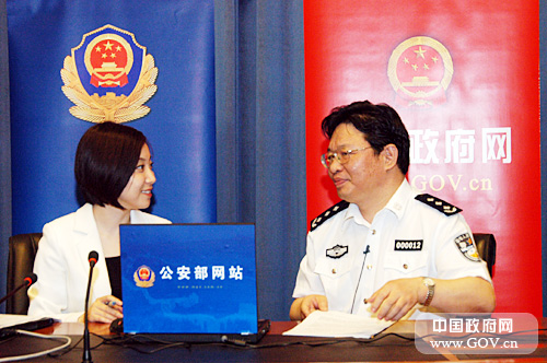 22日,公安部党委委员、部长助理孙永波(右)在中国政府网接受在线访谈。中国政府网 张龙 摄