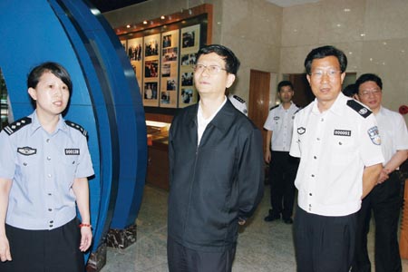 图为国务委员、公安部党委书记、部长孟建柱等领导在浙江省公安厅调研。记者 谢佳 摄