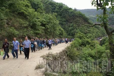 5月13日下午1时,四川省司法厅副厅长江金河迅速赶到崇州监狱,并现场成立抗震救灾指挥部,决定立即将山上监区704名罪犯紧急转移至崇州市西江新狱部。当晚21时36分,704名服刑人员安全顺利地进入了新监狱关押点,没有发生一起伤亡、逃跑事件。