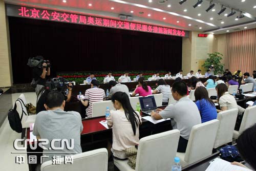 北京市交管局副局长翟双合在发布会上介绍奥运期间推出的10项便民措施