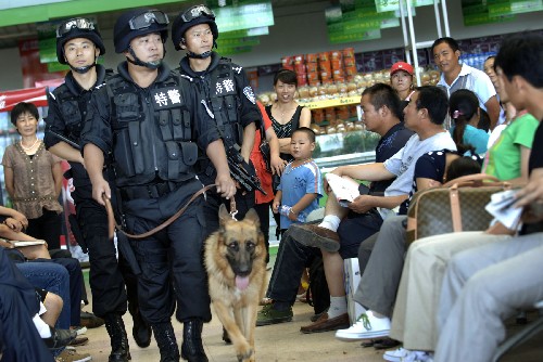 蚌埠铁路特警护卫“平安奥运” 来源:cpd.com.cn 作者:李健 发布时间:2008-07-11 15:35:58 浏览次数: 次 【字体:小 大】 7月10日,蚌埠铁路特警支队的3名特警在蚌埠火车站候车厅巡逻 7月10日,蚌埠铁路特警利用警犬排查可疑物品 7月10日起,上海铁路局奥运安保工作进入决战阶段。为实现“平安奥运”目标,辖区内的蚌埠铁路警方开始每天出动特警巡逻,利用警犬排查可疑物品,以加大检查力度、预防重大突发事件的发生。 智能标签: 特警 平安奥运 相关内容 【打印正文】