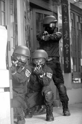 一名漂亮的“蓝剑突击队”的女警花告诉记者,现在队内每个人的目标都很明确,保卫奥运安全是大家的首要任务。因此,大家都已经放弃了休假,几乎完全封闭,每天都在紧张的训练之中,而且新增了很多专门针对奥运可能遇到的突发事件,增加了一些有针对性的训练科目。尽管没有假期,没有太多与外界交流的机会,但每个人的精神状态还是很好,从心理和技能两方面都做好了迎接挑战的心理准备。