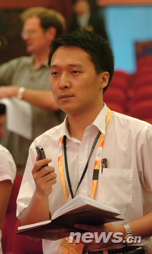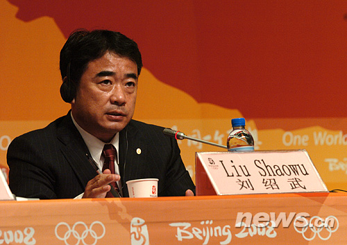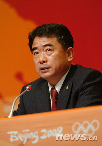图为北京奥组委安保部部长刘绍武回答记者提问。新华网 陈竞超 摄