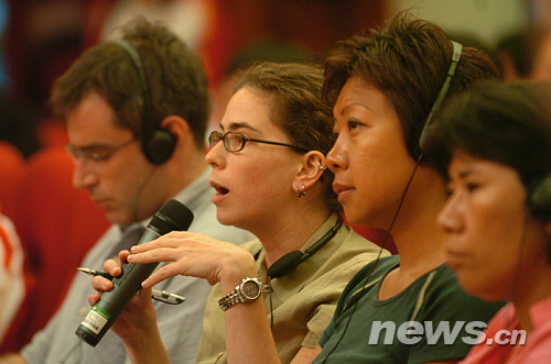 图为外国媒体记者提问。新华网 陈竞超 摄