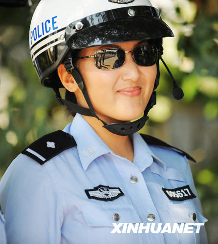 年轻漂亮的女骑警(8月3日摄)。 新华社记者杨光摄