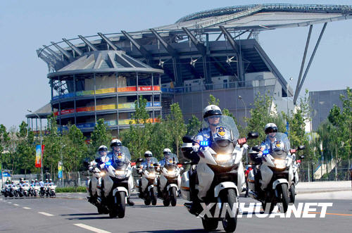 8月3日,北京奥运带路队的交警准备出发。 当日,北京市交管局、中国日报、北京摄影家协会等联合举办的“中外摄影家聚焦北京交通摄影大赛”启动仪式在北京奥体中心南门举行,该活动特邀请中外各100名摄影家聚焦北京交通,展现北京交警服务奥运的精神风貌。 北京奥运会期间,北京市交管局将动用6500名交警,确保奥运交通有序、安全、畅通,实现赛事交通和城市交通和谐运转。 新华社记者 陈建力 摄