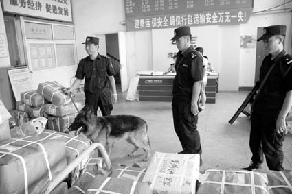 为确保奥运安全,治安巡逻车、搜爆犬、便衣刑警24小时不间断地守卫着沈阳北站。沈阳铁路公安局北站派出所所长朱吉东说:“站前广场,进站大厅和三品检查处,进站通道,行李房、售票处和候车室、列车,这是我们安保的5道防线,也就是铁桶式控制管理机制。”