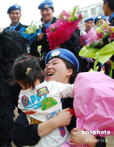 8月15日上午,中国第六支赴海地维和警察防暴队95名队员飞抵昆明巫家坝国际机场,加上此前已经回国的30名先遣队员,这支由125名队员组成的队伍圆满完成为期8个月的联合国海地任务区维和任务,胸挂联合国“和平勋章”凯旋回国。