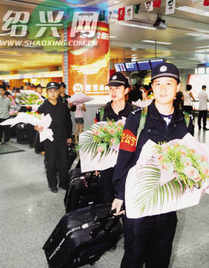 出机场时,民警们都整齐地穿着作训服,他们的出现立刻引来了一片目光。“这些警察都是绍兴的,看他们的脸怎么都这么黑啊!”一个女孩在嘀咕。记者仔细观察后发现,56张疲惫的脸,无一是白净的。