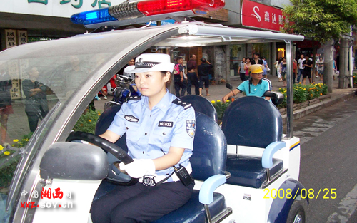 日前,在凤凰古城大街上,一队身穿制服、腰佩对讲机及警棍等警用装备,英姿飒爽的女交警引来了众多市民和游客的目光。
