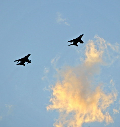 一片祥云伴着空军战机在蓝天巡逻。谭超 摄