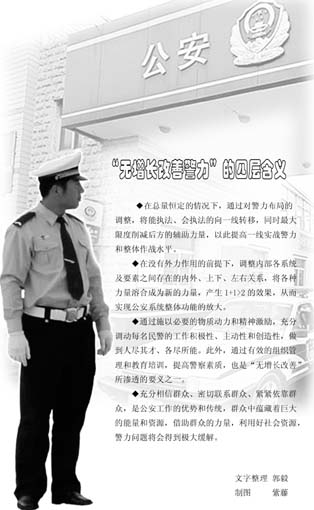 记者:大庆市公安局刚刚开始改革时,确实把大家吓了一跳,因为你们把派出所“取消”了。现在看,这项改革实际上是在警力不足这个难题上动了个手术。据我所知,我国警察数量与人口的比例约为万分之十二,国际平均数约为万分之二十至三十,西方发达国家则更高。从数字表面上看,我国警力严重不足。那么,这种不足是不是简单的比例问题?