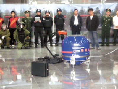 用机器人处理可疑箱包。 昨日上午10时许,(上海)两名乘坐地铁的中学生在人民广场内发现一只可疑箱包。市局指挥中心接到报告后,迅速调集消防特勤支队赶赴现场进行处置,特勤人员先是对现场进行电子屏蔽干扰,防止犯罪人员远程干扰,再利用高科技炸药探测仪判断是何种炸药,最终用机器人成功将爆炸物品转移。据了解,这是昨日为配合“119消防日”在人民广场地铁站举行的高科技处置爆炸物展示。 接报预处 昨日上午10时45分,两名身穿校服的中学生在人民广场准备乘坐地铁。当他们行至换乘大厅时,两名中学生发现大厅里有一只可疑的无主箱包。为安全起见,其中一名同学立即用手机拨打了报警电话。 轨道分局派出所巡逻民警接到处警指令后,根据先期处置的工作要求,携带有关装备赶到现场进行处置。记者看到,由民警操纵的是公安思维代步车,该车操控便捷,适合民警在车站等地巡逻。此时,民警一边询问报警人并设置警戒区,一边用防爆毯覆盖在可疑箱包上。 警犬嗅爆 在轨道交通民警对可疑物品进行先期处置后,专业警犬在公安人员的带领下来到现场。这些经过专业训练过的警犬开始对可疑物进行闻嗅。 当警犬在嗅到爆炸物品时,它们会作出下蹲的示警反应。记者发现两名专业警犬对可疑箱包进行嗅测,警犬均作出了下蹲示警反应。警方初步判断该箱包内确有易燃易爆危险物品。 屏蔽干扰 与此同时,消防特勤支队身穿排爆服的消防特勤人员把一台电子干扰仪放置在离爆炸物5米处的地面上,对现场进行电子屏蔽干扰。据介绍,这主要是为了防止犯罪人员遥控引爆炸弹。 随后,消防特勤人员利用绳钩触动爆炸物,这主要是防止直接接触时发生爆炸,确保了消防特勤人员的自身安全。 炸药分析 里面是什么炸药,是否会有破坏性威胁。消防特勤人员一前一后,对爆炸物品实施了电子听诊,判断该爆炸物是否有机械定时装置。如果有定时机械声就会从探头直接传到排爆人员耳里。 消防特勤人员拿着炸药探测仪在爆炸物的外部小心“采样”。通过采样和离子分析,炸药成分很快分析出来,并确认为“黑火药”。 机器人转移 为保证安全转移,排爆人员将一台小机器人和一个防爆球罐送到了现场。小机器人由消防特勤远距离无线遥控靠近爆炸物,它利用手臂将爆炸物小心抓起,并稳稳地驶向前方的防爆球罐,靠近后小机器人将炸弹放入罐体内。 随后,消防特勤人员将防爆球罐转移出轨道交通区域,带到野外空旷地进行处置。 |